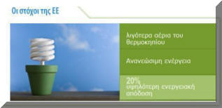 Περιορισμό της ενεργειακής κατανάλωσης στην ΕΕ κατά 20% μέσω της αύξησης της ενεργειακής απόδοσης.